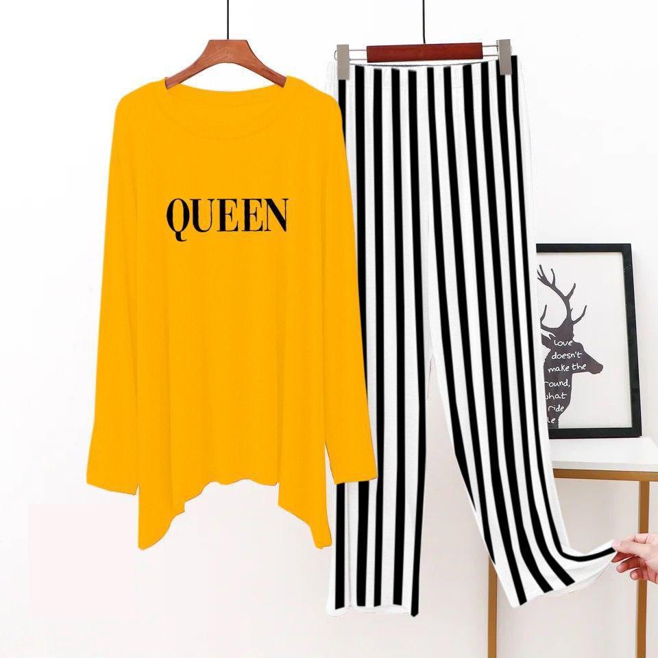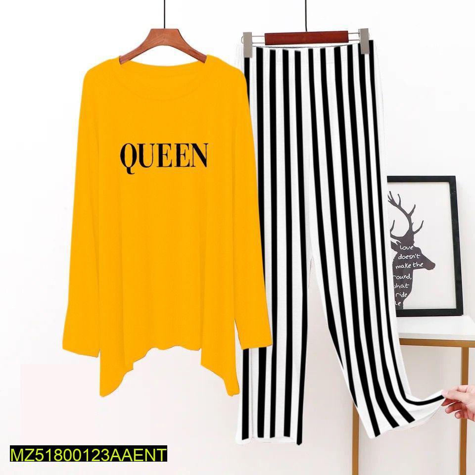 Be the first to review “2 Pcs Women’s Stitched Jersey Printed Sleepwear, Yellow Queen”